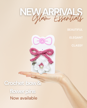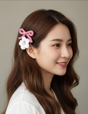 Bring charm and sweetness to your hairstyles with our Crochet Bow & Flower Hair Pins Set 🌸🎀